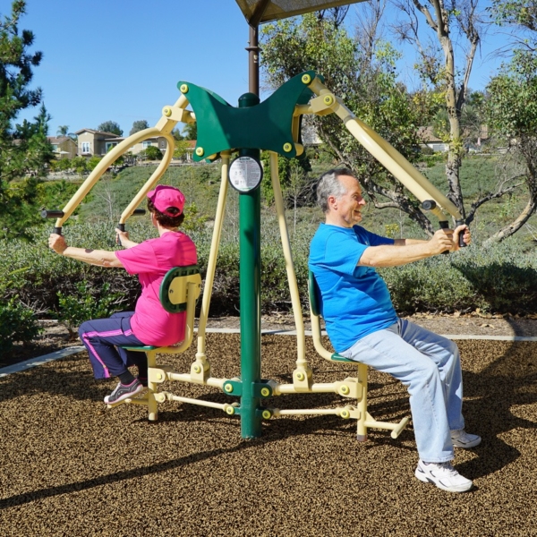 Designed to mimic the motion of a seated press, the Chest Press station provides a reliable method for building upper body strength outdoors. With adjustable resistance and intuitive handles, this unit offers a smooth pressing motion that targets the pectorals, deltoids, and triceps, while also engaging the core for balance and control.