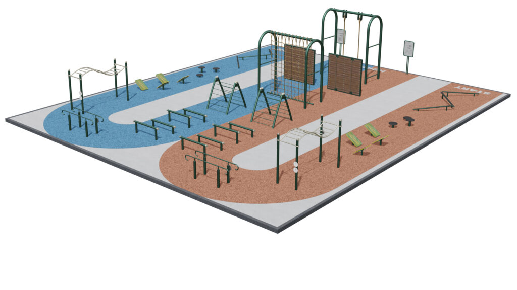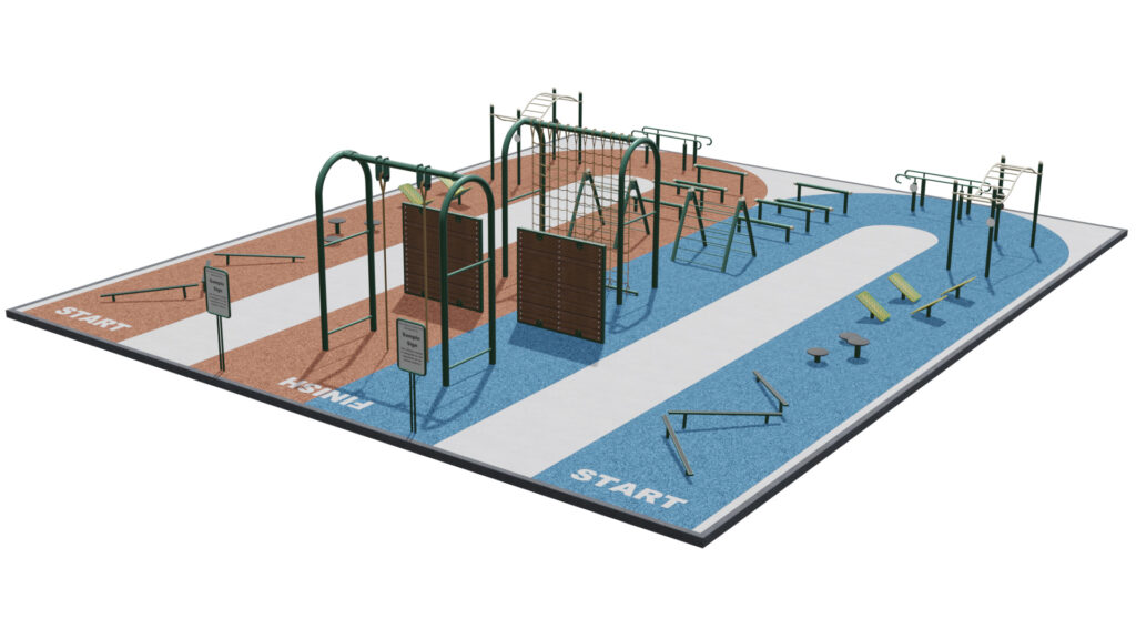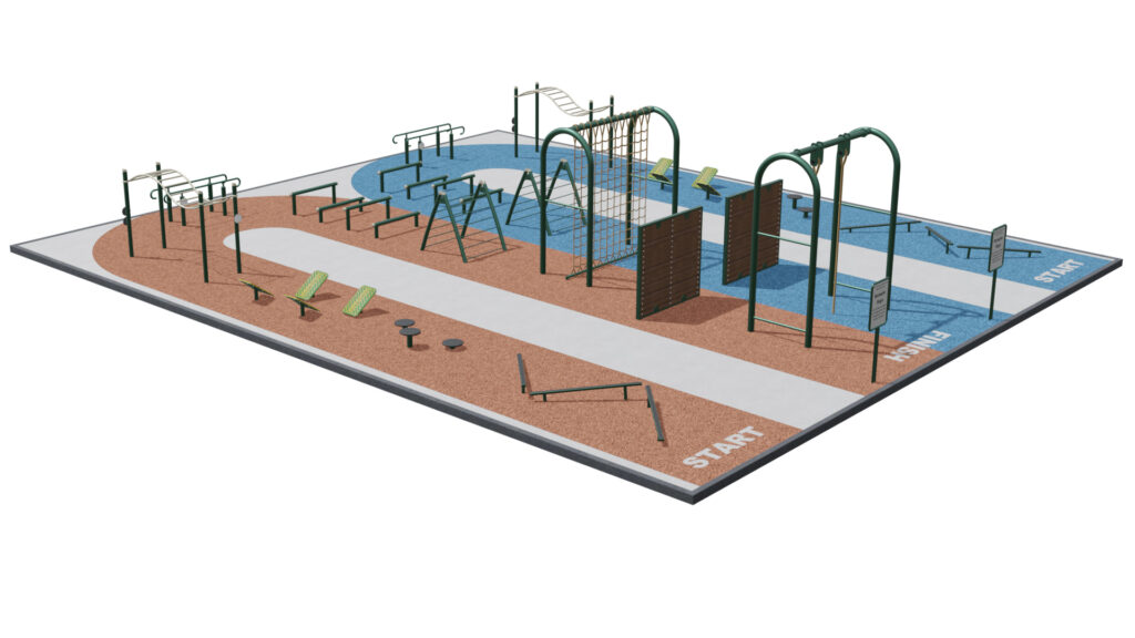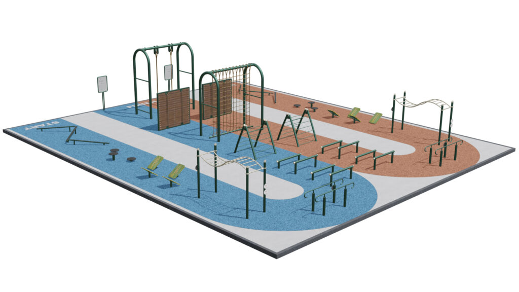 Obstacle Course 1 delivers an exciting introduction to outdoor fitness, featuring a variety of obstacles designed to build strength, balance, and agility. Its compact layout makes it ideal for parks, schools, and recreation areas, offering a fun and challenging workout for users of all ages.